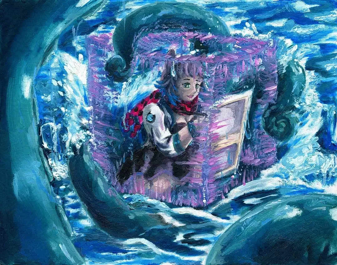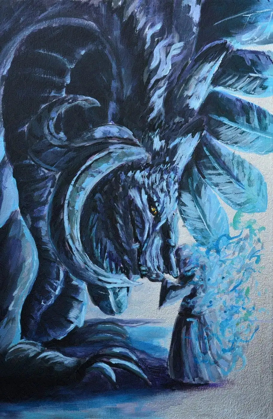 Hraesvelgr and Shiva from FFXIV. Acrylic on silver leaf