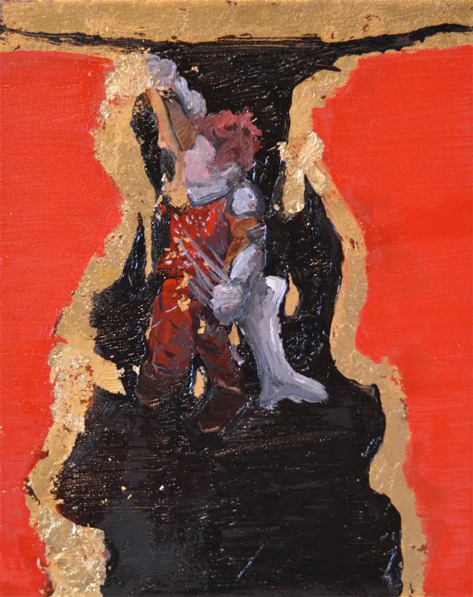 Tinkering with 23kt gold leaf and a homemade cadmium red. Oils.