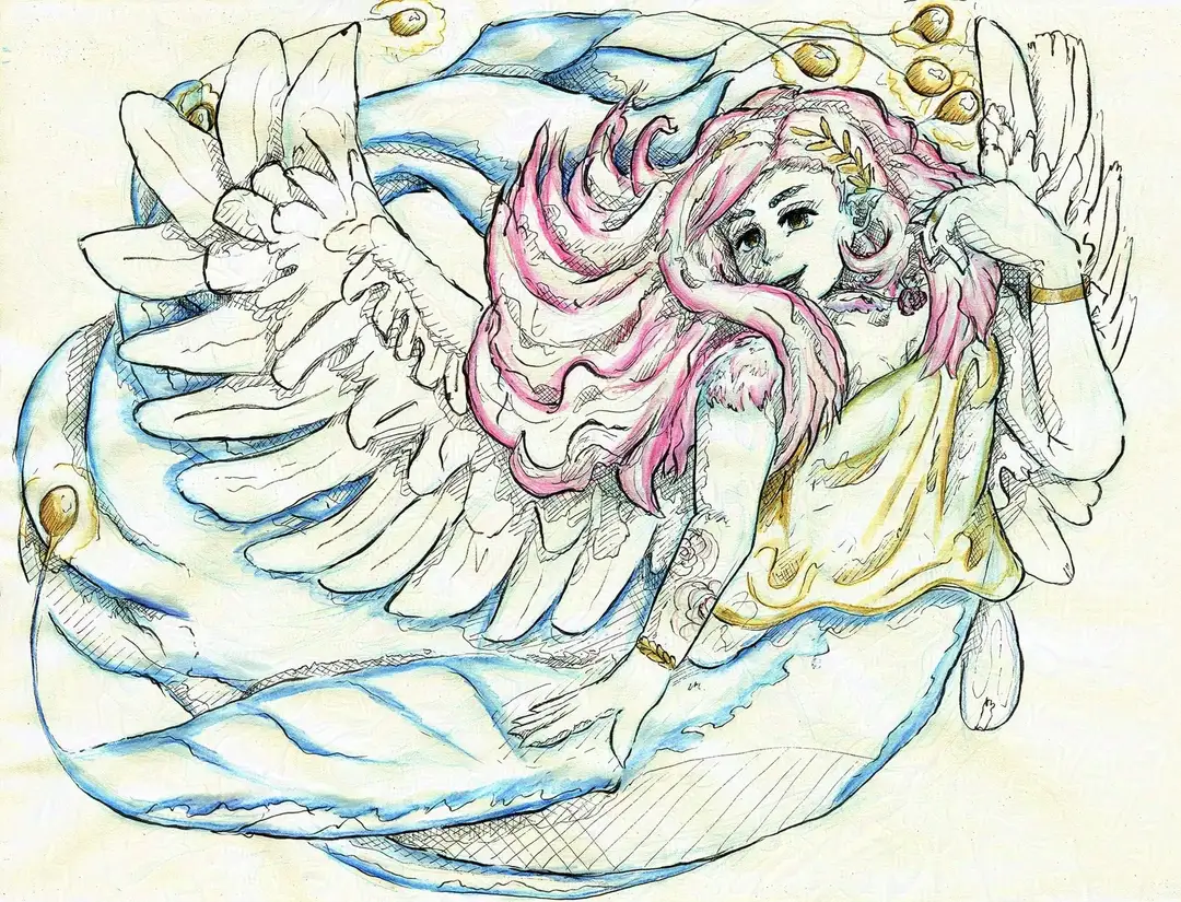 With my arm recovering, I'm free to experiment with more pressure-intensive mediums again. This one is watercolor over graphite shading, trying to add a little texture to a simple wash.