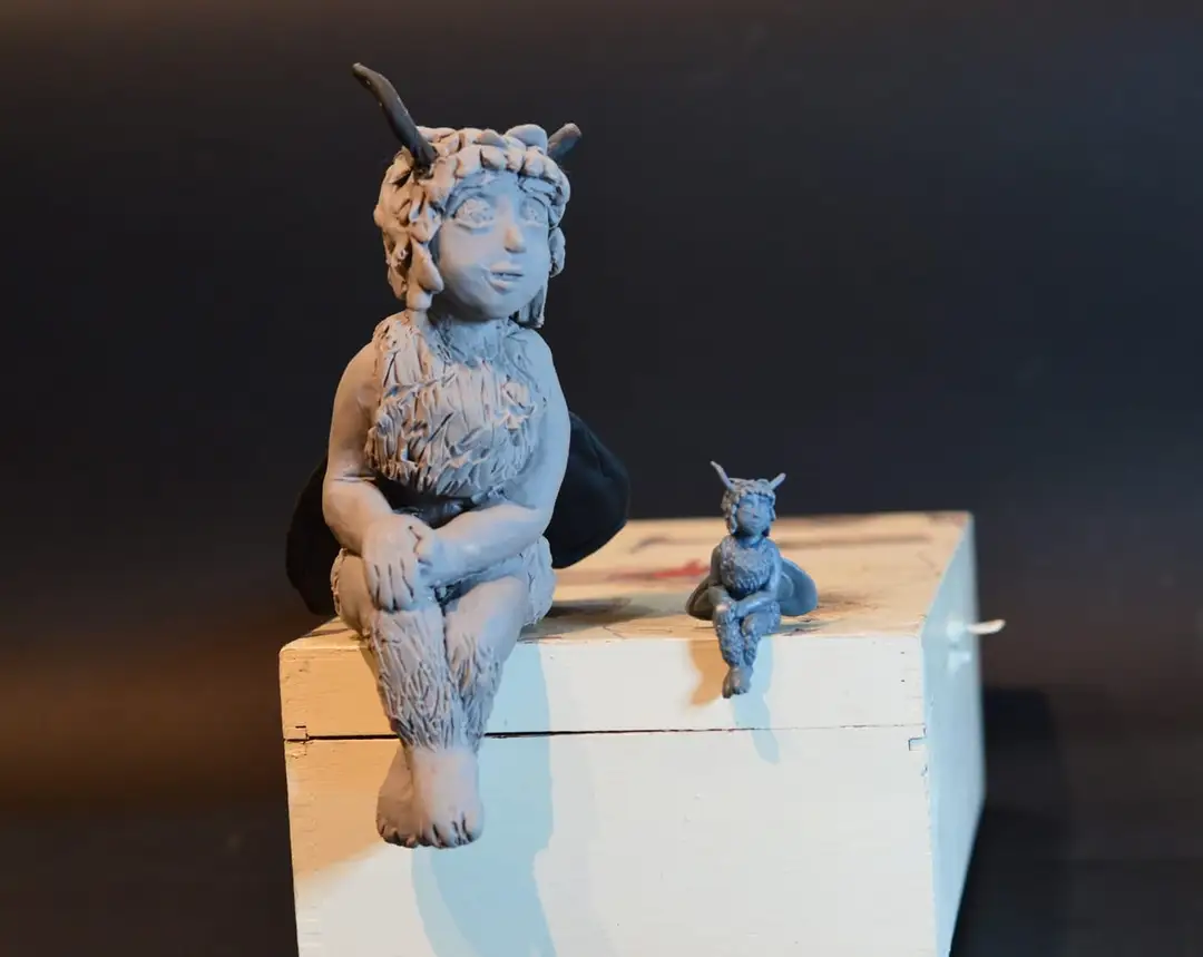 Cutest herb sprite. Polymer clay original and scaled-down 3d print.
