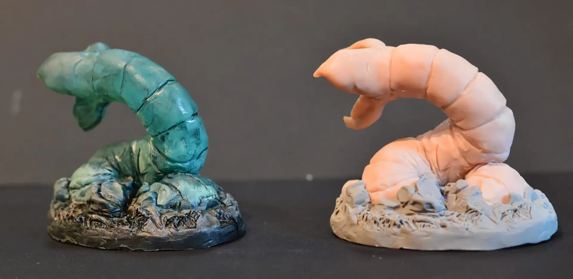 Dipping my toe into sculpting minis with a simple Very Big Spooky Worm.