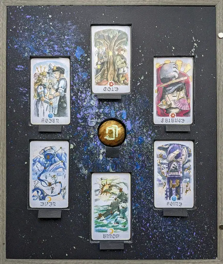 Watercolor reimaginings of the six Major Arcana from Final Fantasy XIV.